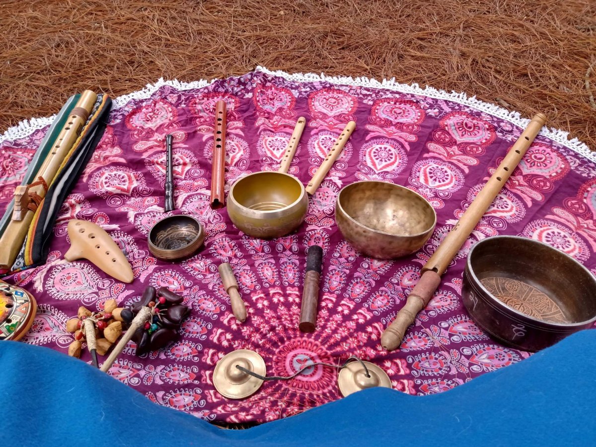Experiencia terapéutica a través del sonido del viento, la percusión, los cuencos y un propósito guiado.